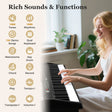 ●Rich Sounds & Functions: This folding electric piano boasts 1000 tones 1000 rhythms and 150 demo songs perfect for exploring various genres and styles. It also includes many functions including dual keyboard metronome key drum chord record play tempo+/- transpose+/- and volume+/- to enhance your music learning experience.