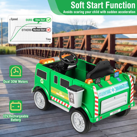 12V Battery Powered Electric Vehicle with Remote Control and Trash Bin-Green