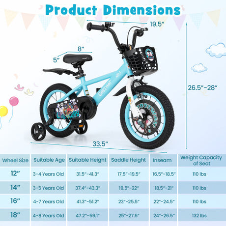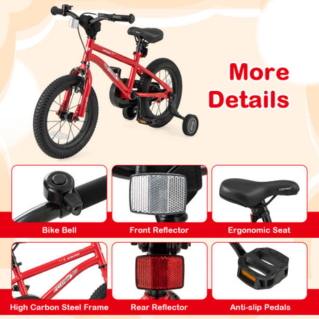 16 Inch Kids Bike Lightweight with Detachable Training Wheels for Aged 4 to 7-16 inches