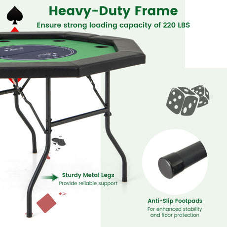 48 Inches Foldable Poker Table with Padded Rails and Cup Holders-Green