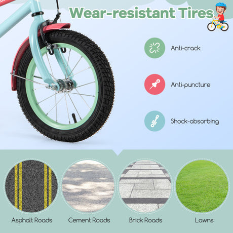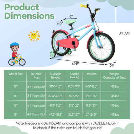 16 Inch LED Lighted Kids Bike with Training Wheels and Headlight for Ages 4-7 Years-16 inches