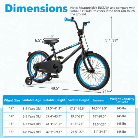 18 Inch Kids Bike LED Lighted Adjustable with Training Wheels for 4-8 Years Old Kids-18 inches