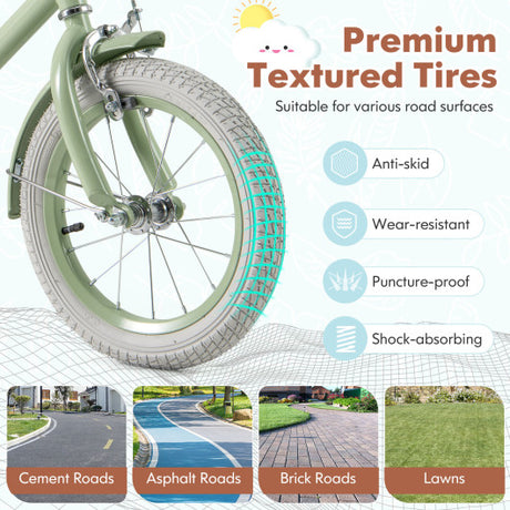 Kids Bike with Adjustable Handlebar and Saddle Green-12 Inches