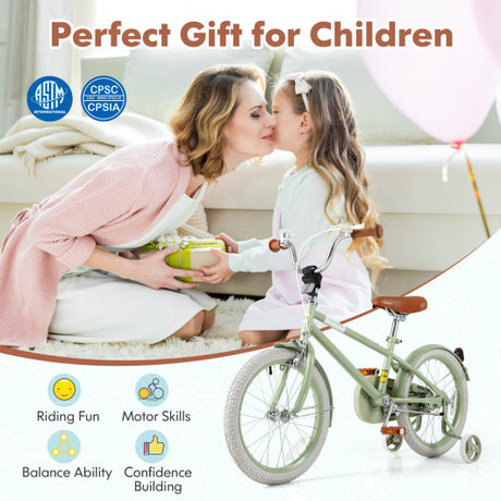 Kids Bike with Adjustable Handlebar and Saddle Green-18 Inches