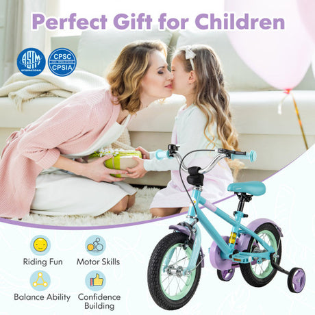 12 Inch Kids Bike Children Bicycle with Training Wheels for 3-4 Years Old-White