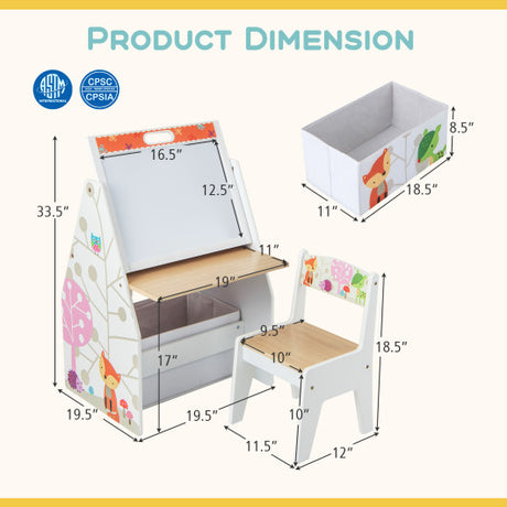 3 in 1 Kids Easel and Play Station Convertible with Chair and Storage Bins-White