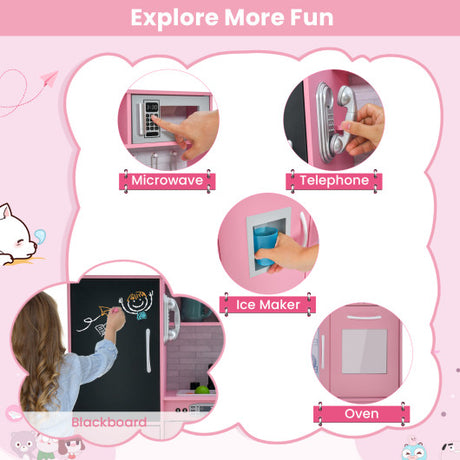 Toddler Pretend Play Kitchen for Boys and Girls 3-6 Years Old-Pink
