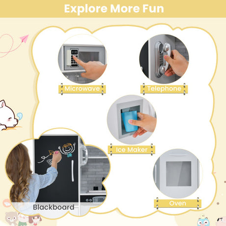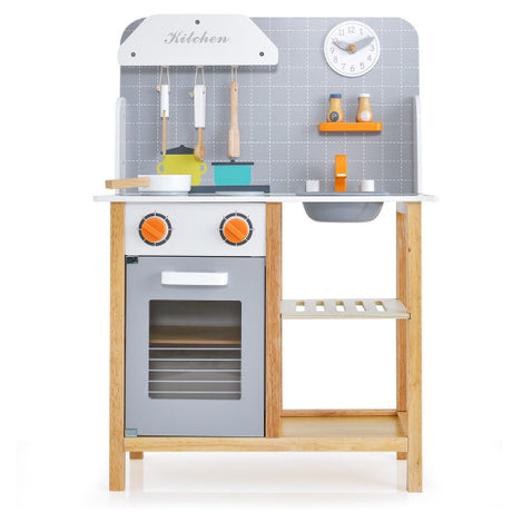 Wooden Toddler Pretend Kitchen Set with Cookware Accessories for Boys and Girls-Grey