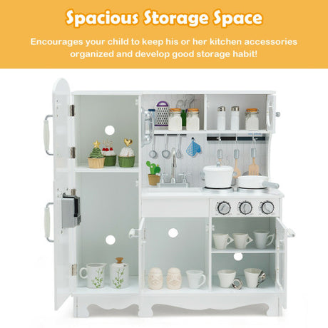 Wooden Pretend Play Kitchen Set for Kids with Accessories and Sink