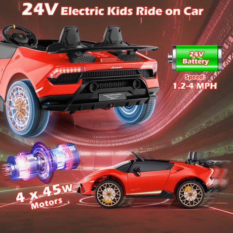 - 28% offCostway 24V Ride-on Car for Kids 4WD 2-Seater Licensed Lamborghini Electric Vehicles with Music-Red Sale price $400.02 Regular price $559.00Unit price /Unavailable1 color available In stock