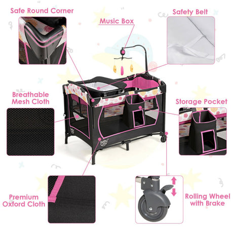 4-in-1 Convertible Portable Baby Playard Newborn Napper with Music and Toys-Pink