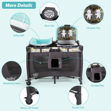 4-in-1 Convertible Portable Baby Play yard with Toys and Music Player-Blue