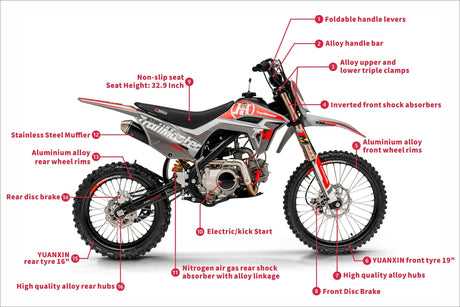 TrailMaster TM27 125cc Large Frame, Dirt Bike 4-Speed Manual (17/14), Ages 12 and up