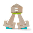 Get ready for some wobbly and wonky building fun! With the Crooked Towers Wooden Block Set kids can use their manual dexterity and powers of imagination to create crooked towers, wobbly bridges, and sloping structures or match the enclosed template cards. In addition to the familiar rectangular shapes, these blocks become a 3D arranging game featuring interesting geometric wooden blocks, triangles, steps, and colorful wedges. Children’s creativity can run free and when they need a new challenge, they can consult the enclosed template cards giving young builders new ideas – in three levels of difficulty. Complement with our other set of wobbly fun arranging set, Teetering Towers Wooden Blocks.
