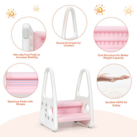 Kids Step Stool Learning Helper with Armrest for Kitchen Toilet Potty Training-Pink