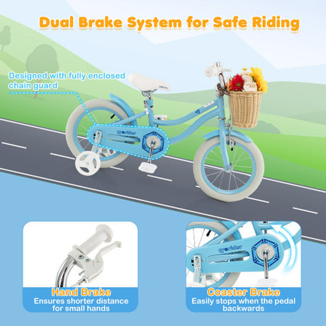 16 Inch Kids Bike Bicycle with Training Wheels and 2 Brake System Ages 4-7 Years Old-16 inches