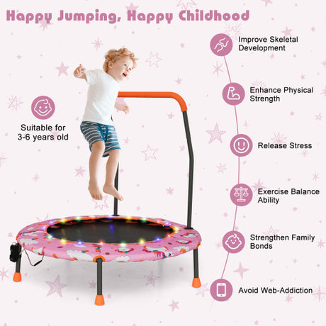 36 Inch Mini Trampoline with Colorful LED Lights and Bluetooth Speaker-Pink