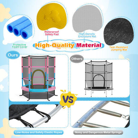 55 Inch Kids Recreational Trampoline Bouncing Jumping Mat with Enclosure Net-Pink