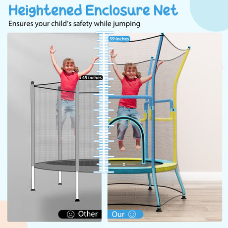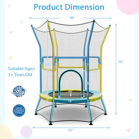 55 Inch Trampoline for Kids Toddler Mini Trampoline with Safety Enclosure Net-Blue