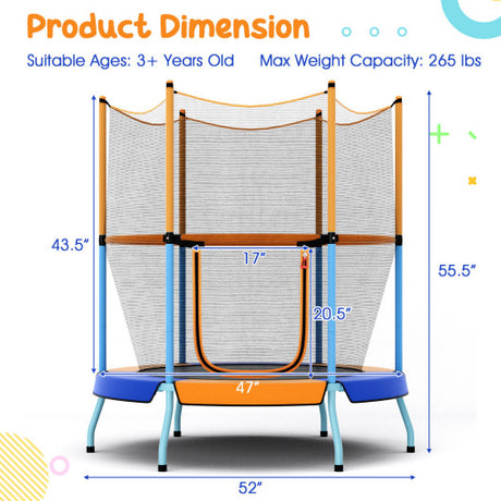 48" Toddler Trampoline with Safety Enclosure Net-Orange