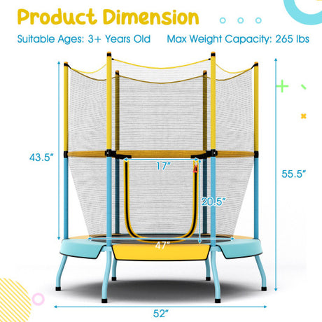 48" Toddler Trampoline with Safety Enclosure Net-Yellow