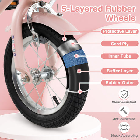 12 Inch Kids Bike with Basket and Training Wheels for Children Aged 3-5 Years Old