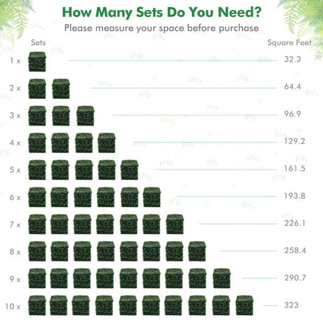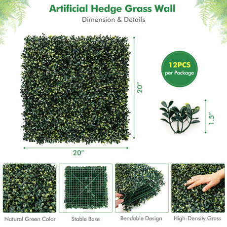12 Pieces 20 x 20 Inch Artificial Boxwood Wall Panels with Insertable Branches