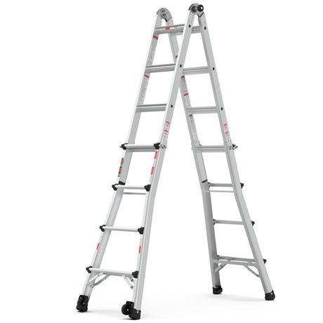 Aluminum Multi-Position Ladder With Wheels, 300 Lbs Weight Rating - Metallic Gray by Couch.com