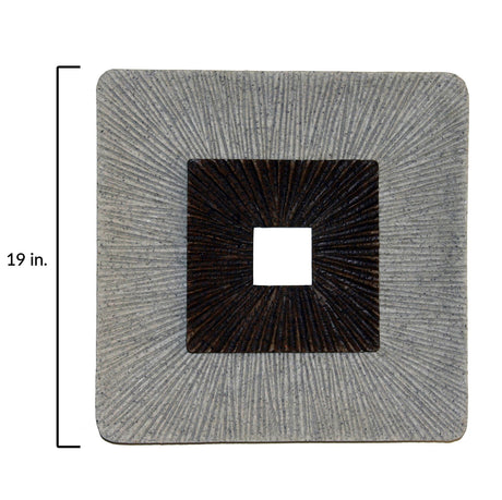 19" X 19" X 2.5" Brown Concave Square Double Layer Ribbed Wall Plaque