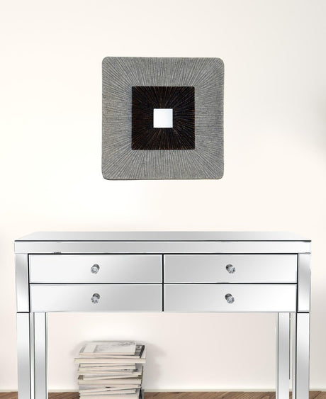 19" X 19" X 2.5" Modern Brown And Gray Ribbed Square Wall Art