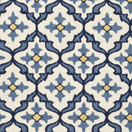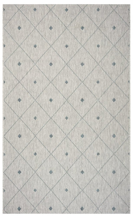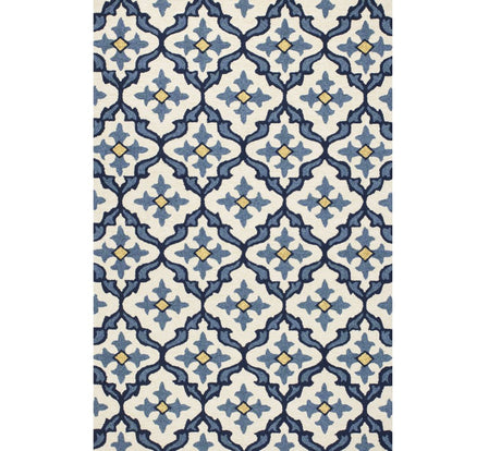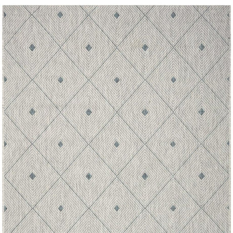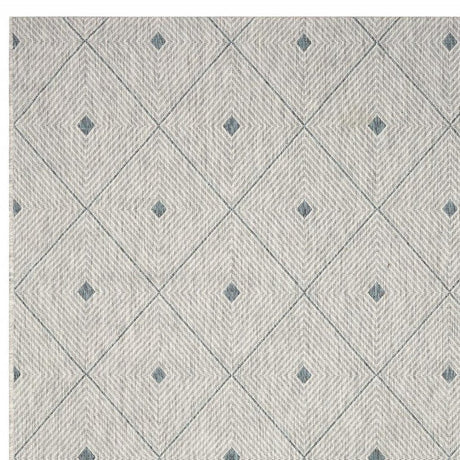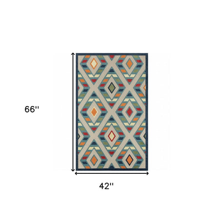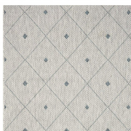 2' X 3' Blue and Beige Geometric Stain Resistant Indoor Outdoor Area Rug