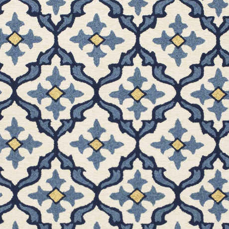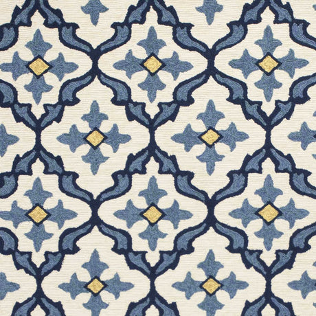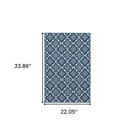 2' X 3' Blue and Ivory Geometric Stain Resistant Indoor Outdoor Area Rug
