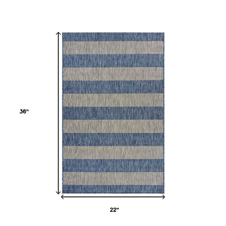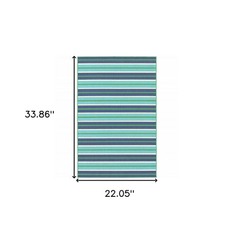 2' X 3' Blue Striped Non Skid Indoor Outdoor Area Rug
