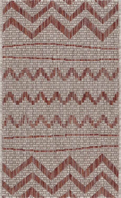 2' X 3' Gray Beige And Red Indoor Outdoor Area Rug