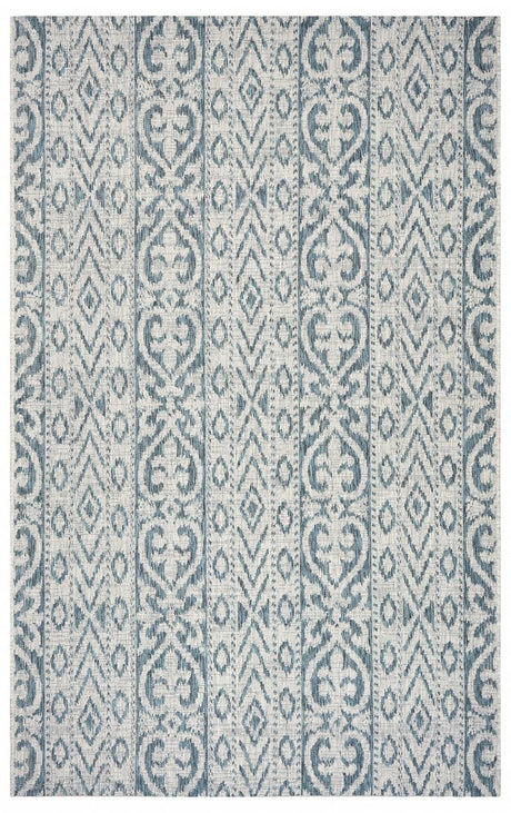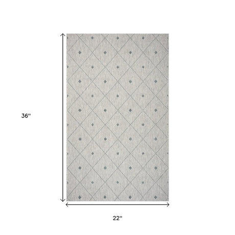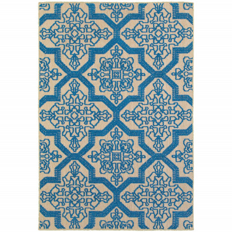 2' X 3' Blue and Beige Stain Resistant Indoor Outdoor Area Rug