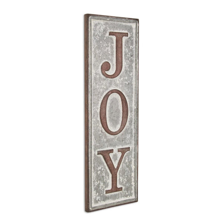 19" X 6" Gray and Brown Handcrafted Joy Metal Wall Decor