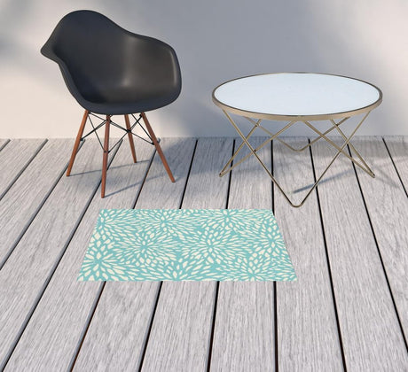 2' X 3' Blue and Ivory Floral Stain Resistant Indoor Outdoor Area Rug