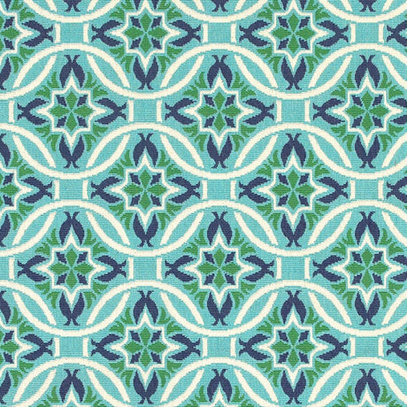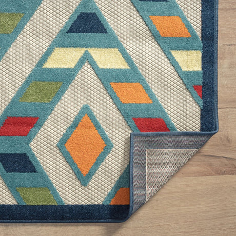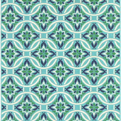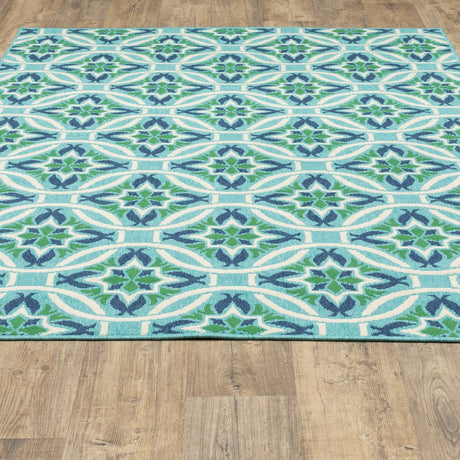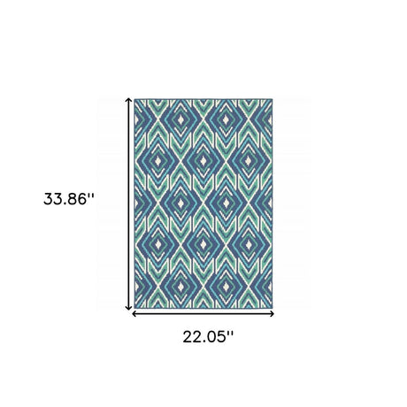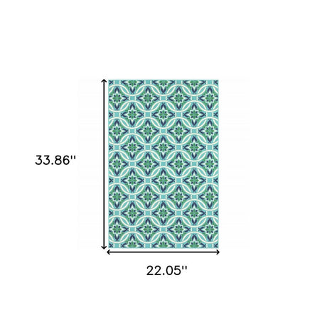 2' X 3' Blue and Green Geometric Stain Resistant Indoor Outdoor Area Rug