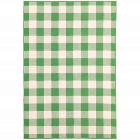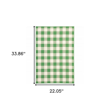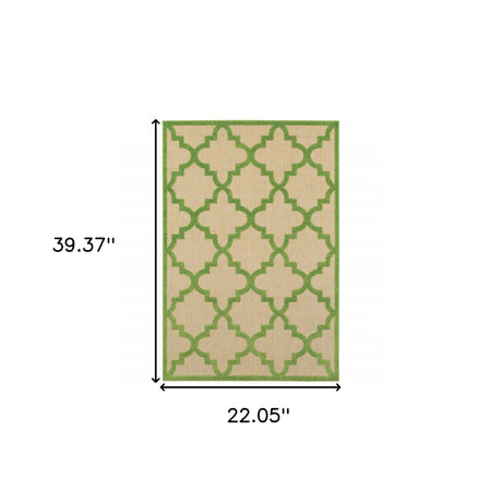 2' X 3' Green and Ivory Geometric Stain Resistant Indoor Outdoor Area Rug