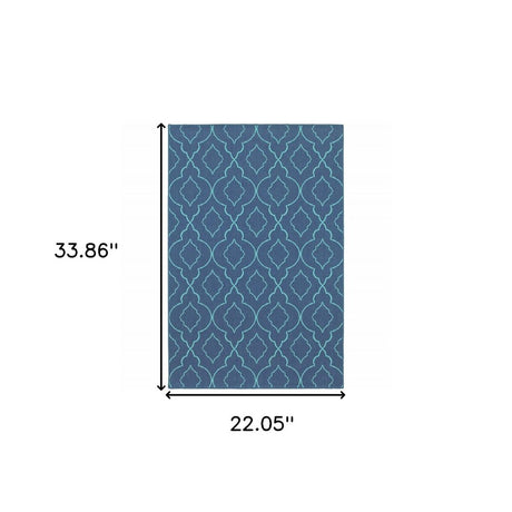 2' X 3' Blue Geometric Stain Resistant Indoor Outdoor Area Rug