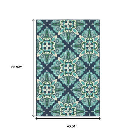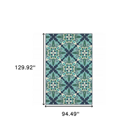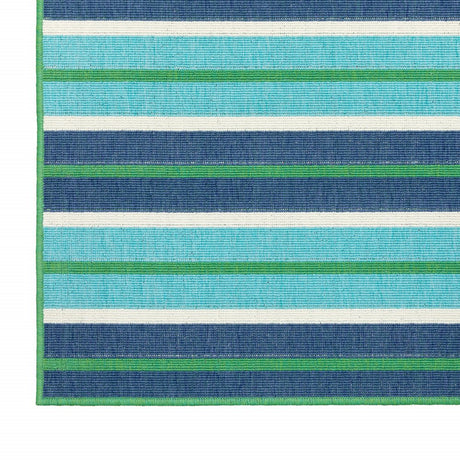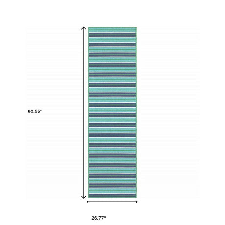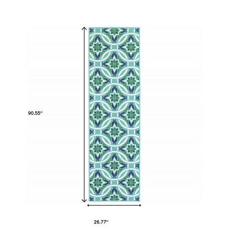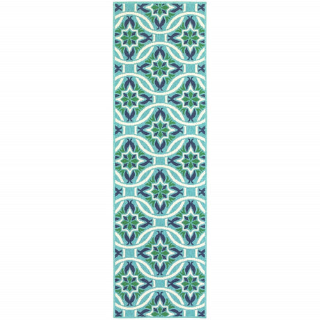 2' X 8' Blue and Green Geometric Stain Resistant Indoor Outdoor Area Rug