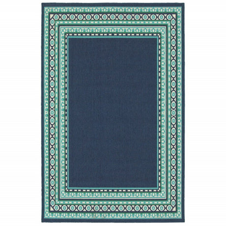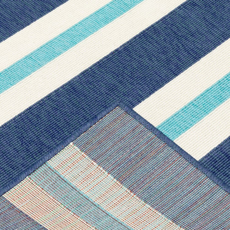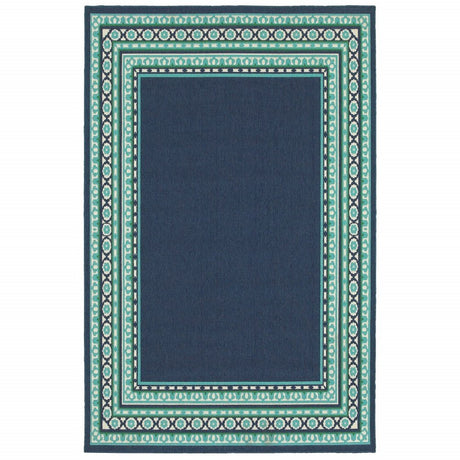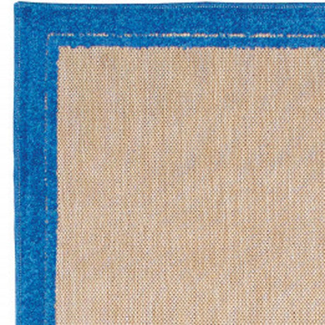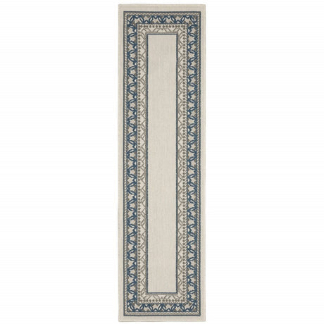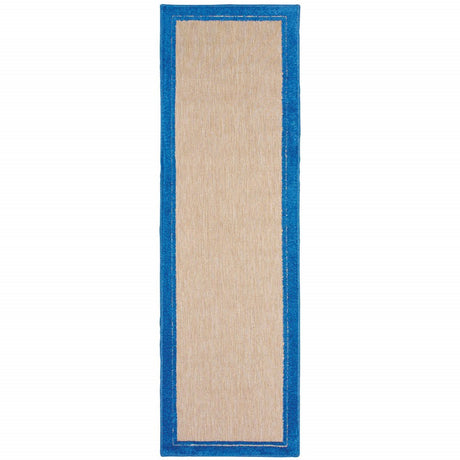 2' X 7' Blue and Beige Stain Resistant Indoor Outdoor Area Rug