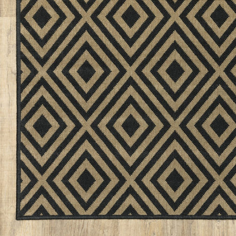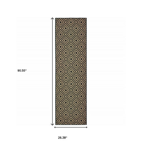 2' X 8' Black and Tan Geometric Stain Resistant Indoor Outdoor Area Rug