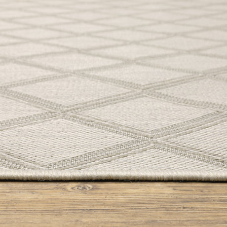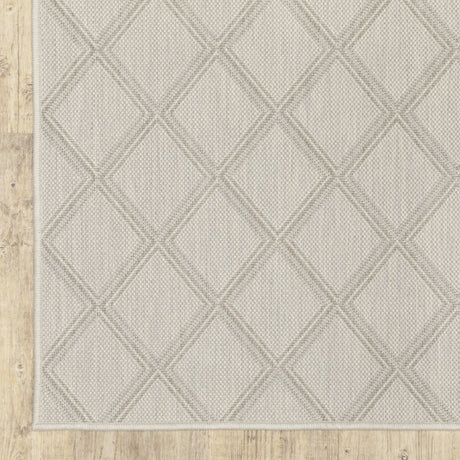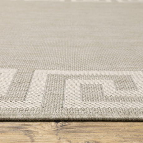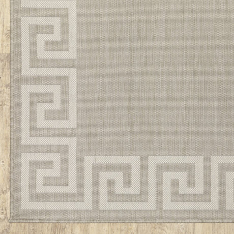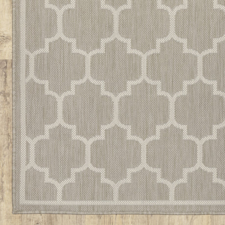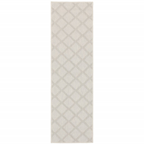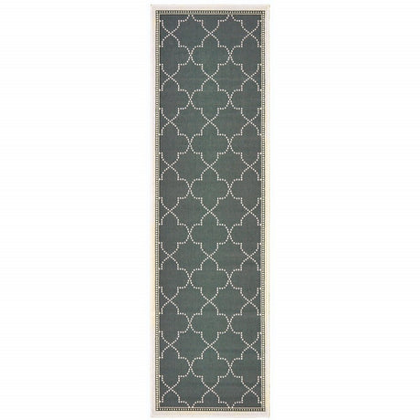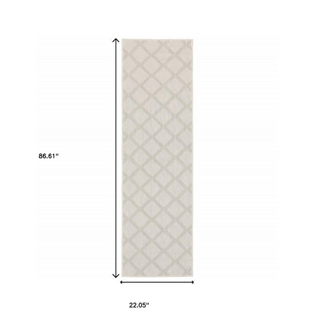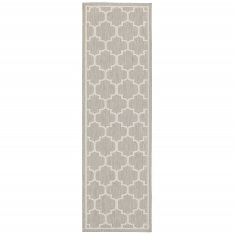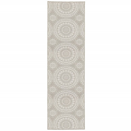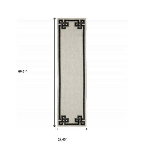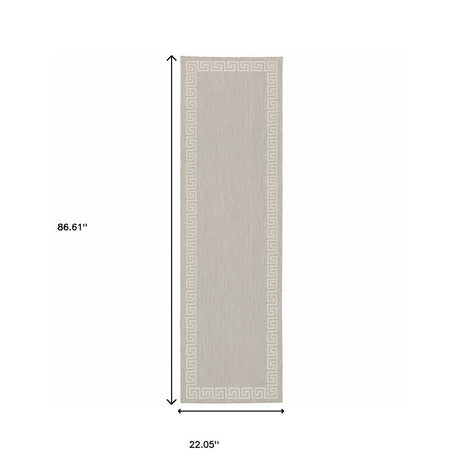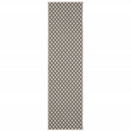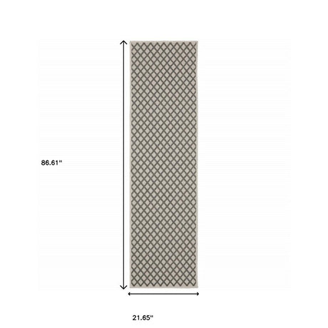 2' X 7' Gray and Ivory Geometric Stain Resistant Indoor Outdoor Area Rug