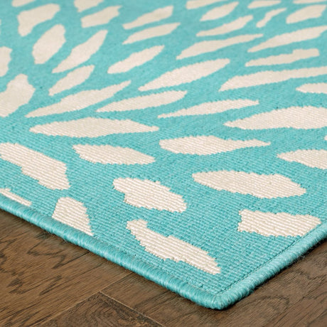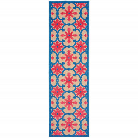 2' X 8' Blue and Beige Geometric Stain Resistant Indoor Outdoor Area Rug