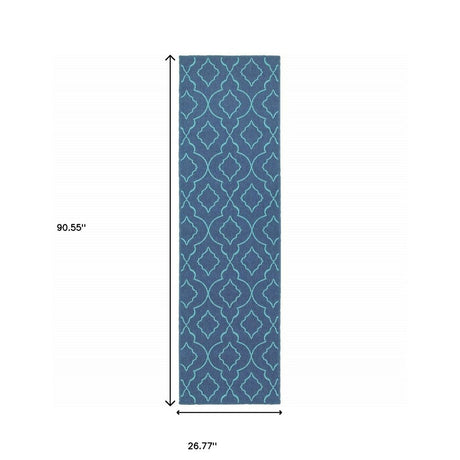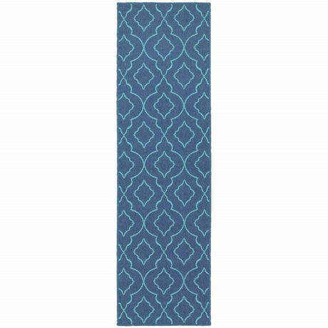2' X 8' Blue Geometric Stain Resistant Indoor Outdoor Area Rug