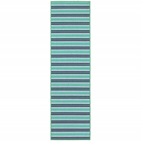 2' X 8' Blue and Green Indoor Outdoor Area Rug