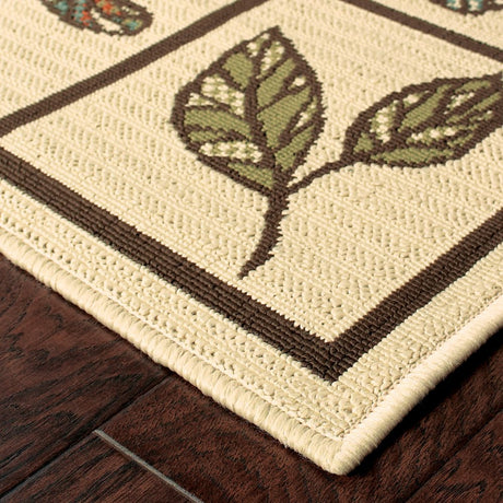 2' X 7' Beige Floral Stain Resistant Indoor Outdoor Area Rug