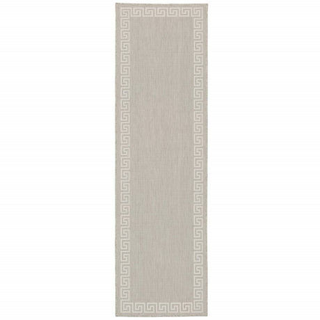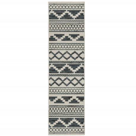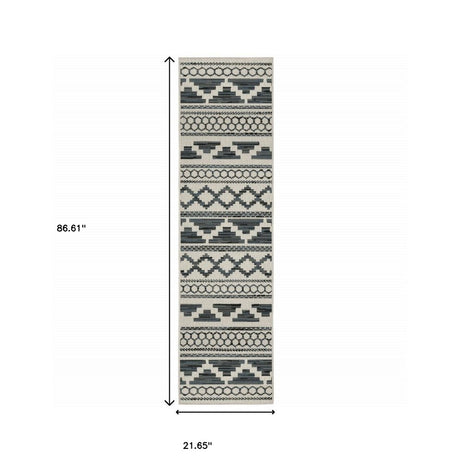 2' X 8' Gray and Ivory Geometric Stain Resistant Indoor Outdoor Area Rug