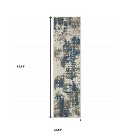 2' X 7' Blue and Beige Abstract Stain Resistant Indoor Outdoor Area Rug